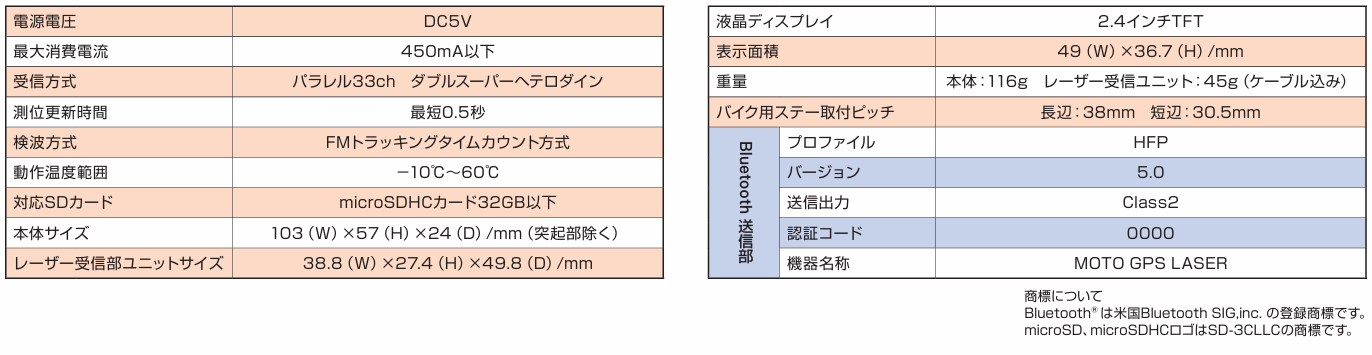 ■MOTO GPS LASER MSSS商品スペック一覧