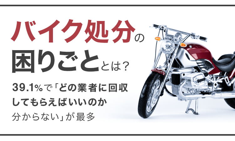 バイクの処分についてもっとも困ったことは、39.1%で「どの業者に回収してもらえばいいのか分からない」が最多でした。