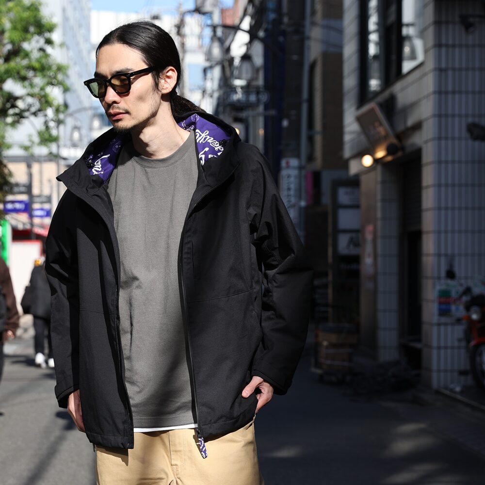 撥水のソフトシェル素材を使用した簡易防水のマウンテンパーカー。