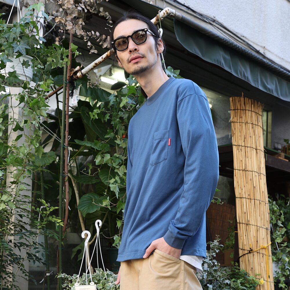 胸ポケットありのロングスリーブTシャツにパッドを装備。