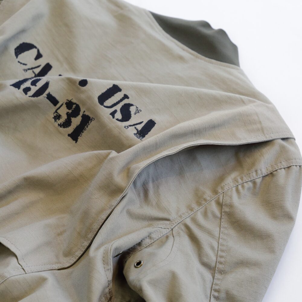もともとタンクを操縦する為のシルエットはバイク乗りにも共通することも多く、イメージを崩すことなくバイク用にアレンジできた ロゴを控えめにしてJKT本来のオーラを尊重したデザイン。