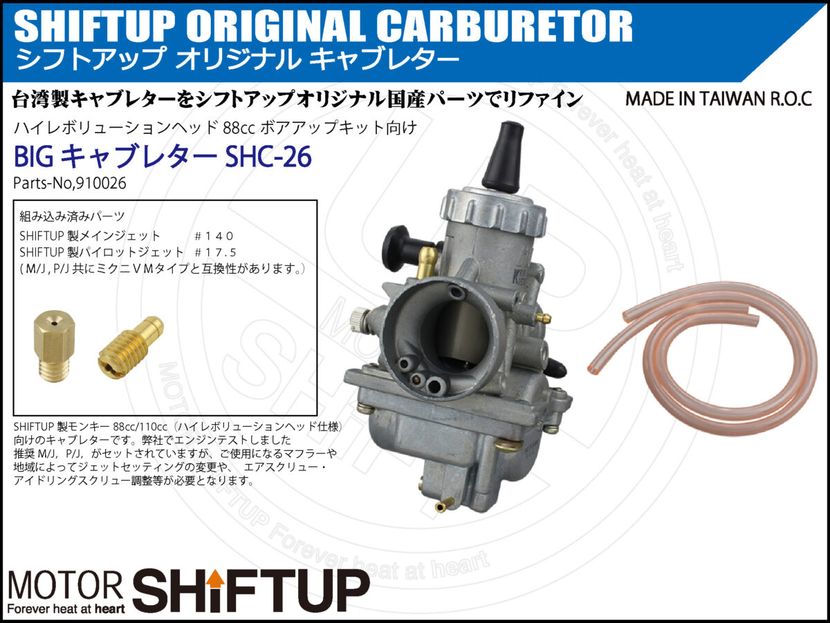 シフトアップ株式会社は、モンキー88cc向けに最適化されたオリジナルキャブレター「SHC-18」と「SHC-26」を発売した。