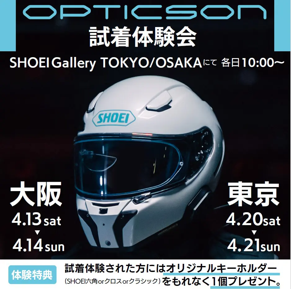 株式会社SHOEI SALES JAPANは、SHOEI Gallery OSAKA / TOKYOにて、HUD(ヘッドアップディスプレイ)内蔵ヘルメット“OPTICSON”の試着体験会を開催すると発表した。