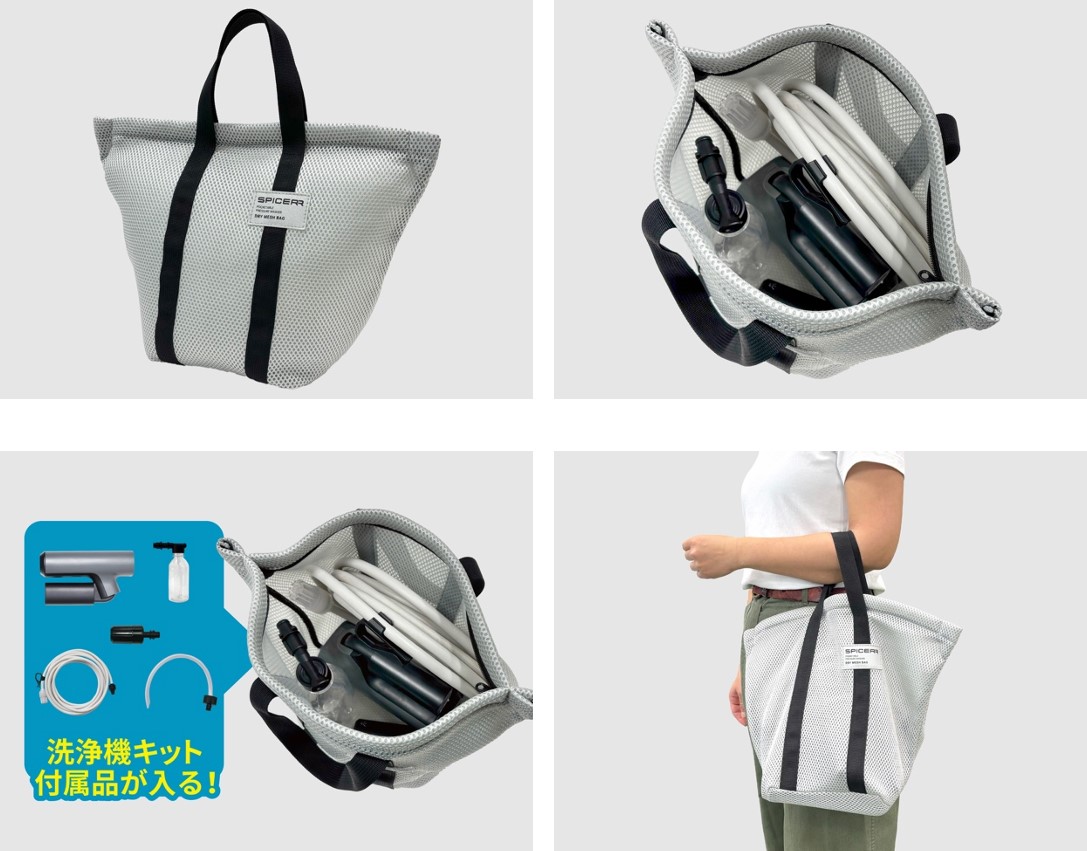 専用ドライメッシュバッグは、通気性に優れ、SPICERR SWU-1を付属品もまとめてスッキリコンパクトに収納できるのが特徴だ。また、SPICERR SWU-1は軽量・コンパクトで水栓不要の洗浄機となり、バイク洗車だけでなく、アウトドアや日常の清掃にも活躍する。興味のある方はチェックしてみてはいかがだろうか。
