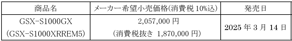 同モデルは、「GSX-S1000」シリーズのエンジンを採用することで、スポーツライディングに必要な動力性能を継承しつつも、ツーリング性能を向上させる新技術と装備を採用している。またスタイリングは、スポーツバイク並みの性能を体現したアグレッシブな外観シルエットに、ツーリングでの快適性を追求したアップライトな乗車姿勢をモダンに組み合わせたデザインが特徴的だ。興味のある方は詳細をチェックしてみてはいかがだろうか。