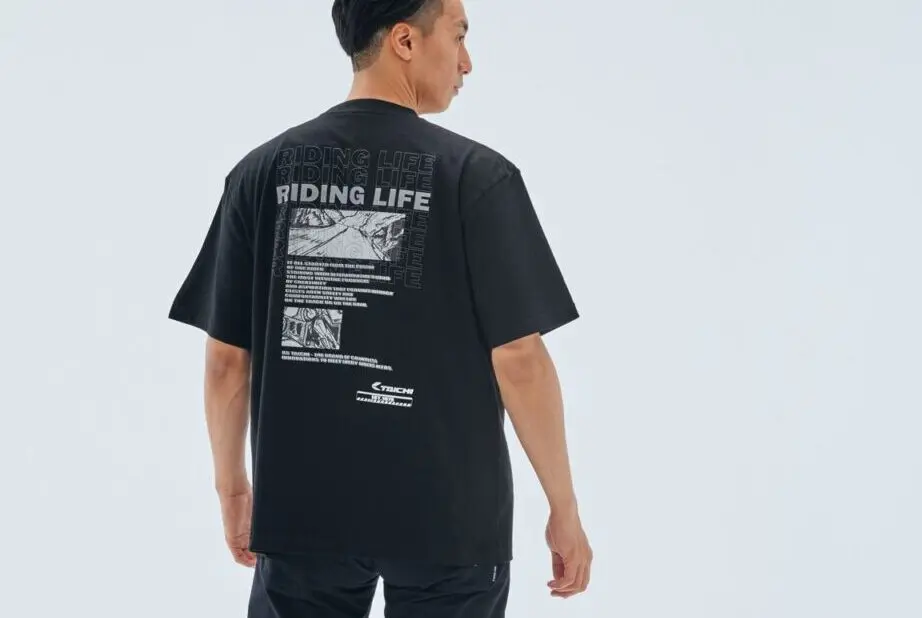 胸元に TAICHI ロゴをあしらった、ライディングでも普段使いでも着まわしやすいベーシックなデザイン。