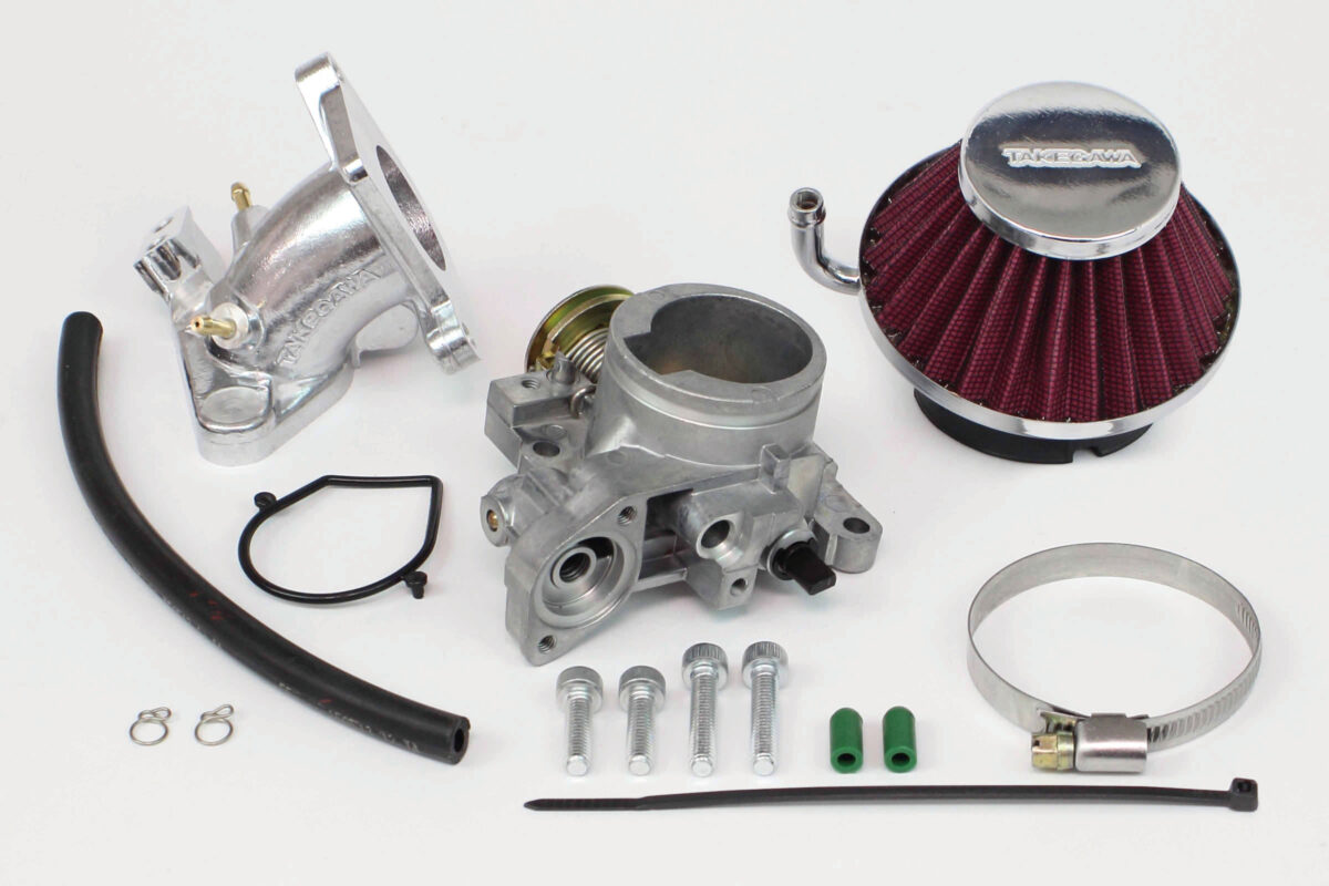 ※ノーマルエンジンには使用できません。 Φ34mmのビッグスロットルボディーを採用することで、SP武川製エンジンパーツの性能を最大限に引出し、出力アップが可能になります。