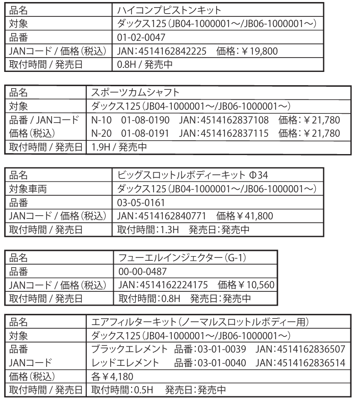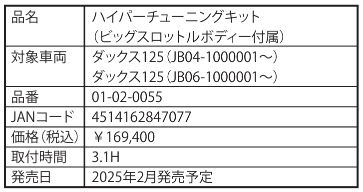 ハイパーチューニングキット ダックス125(JB04/JB06)