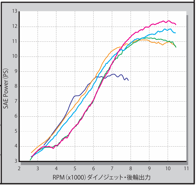 排気量は変えず、ノーマルシリンダーヘッド、ノーマルシリンダーを使用し、ピストンを交換することで、出力アップが可能になります。