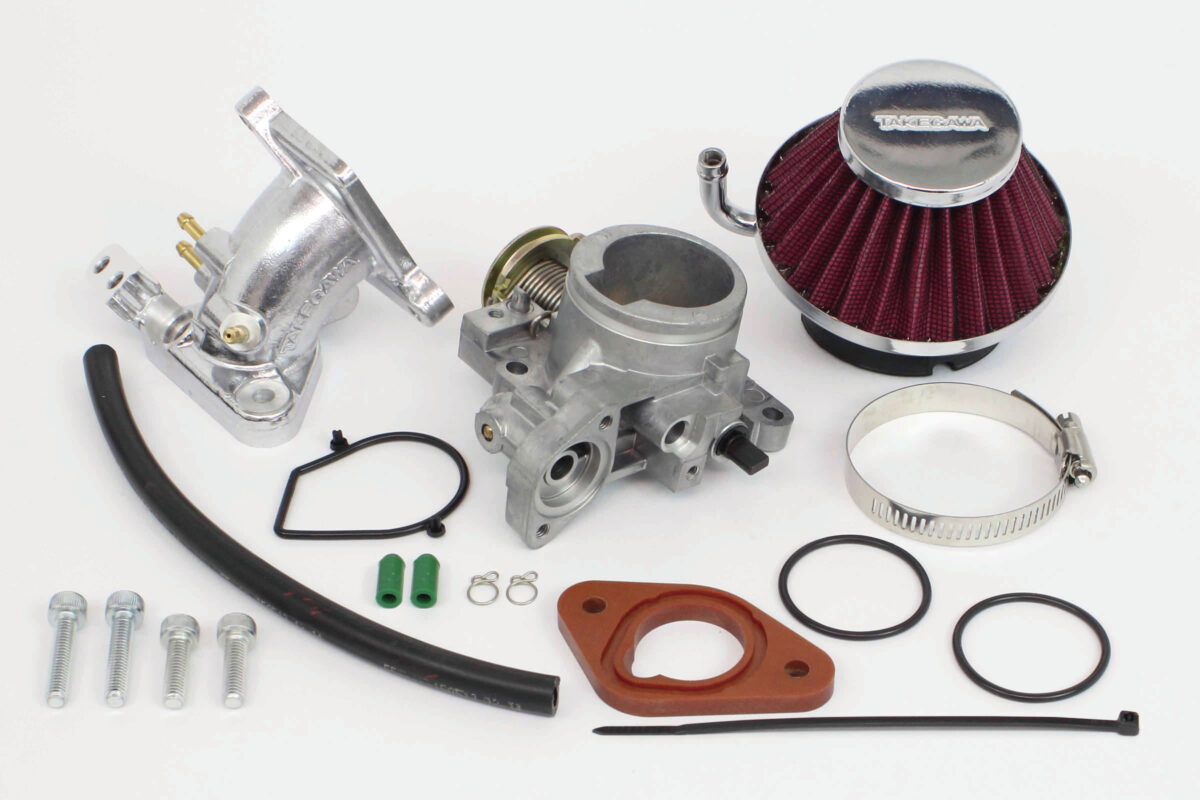 ※ノーマルエンジンには使用できません。 Φ34mmのビッグスロットルボディーを採用することで、SP武川製スーパーヘッド4V+Rの性能を最大限に引出し、出力アップが可能になります。