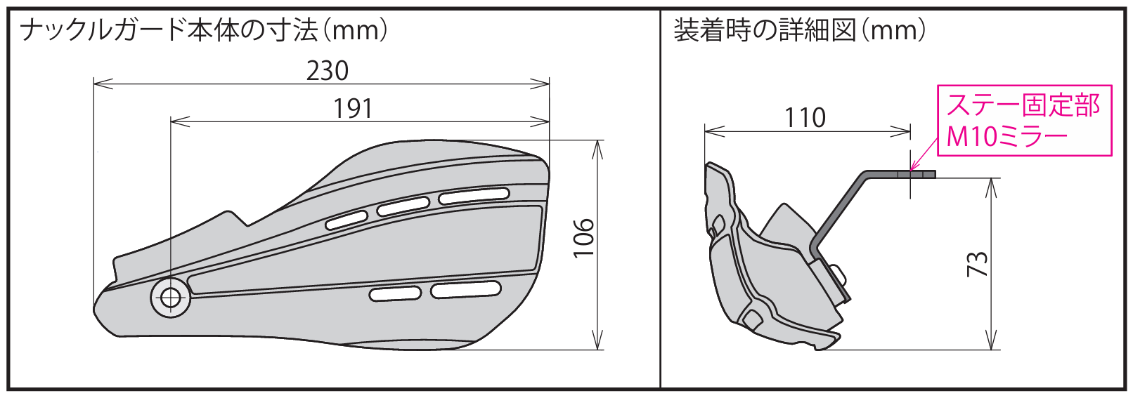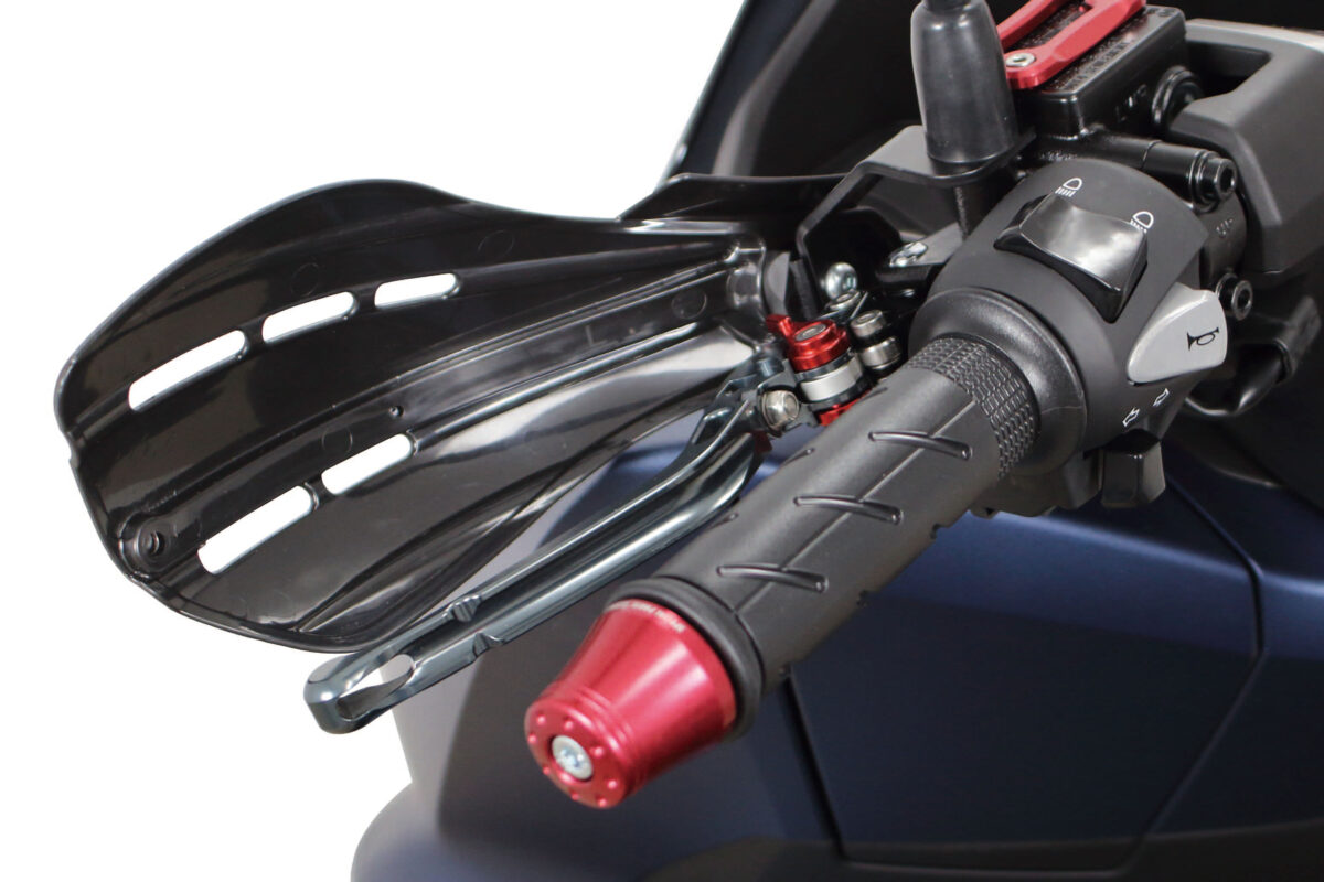 ナックルガードを装着する事で、手元を守る他、風防効果もあり、雨風から手元をカバーする事ができます。