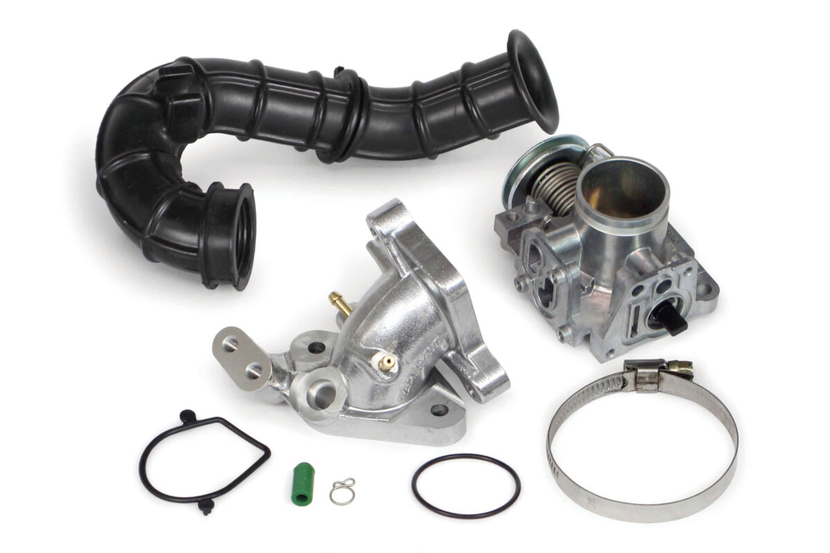 同製品は、高回転域での持続的な出力を発揮する4バルブ仕様ヘッドを中心に、ビッグスロットルボディーやインジェクションコントローラーなどをセット化。高性能とコンパクト性を兼ね備え、競技仕様として大幅なパワーアップを可能とするキットである。価格は275,000円(税込)。