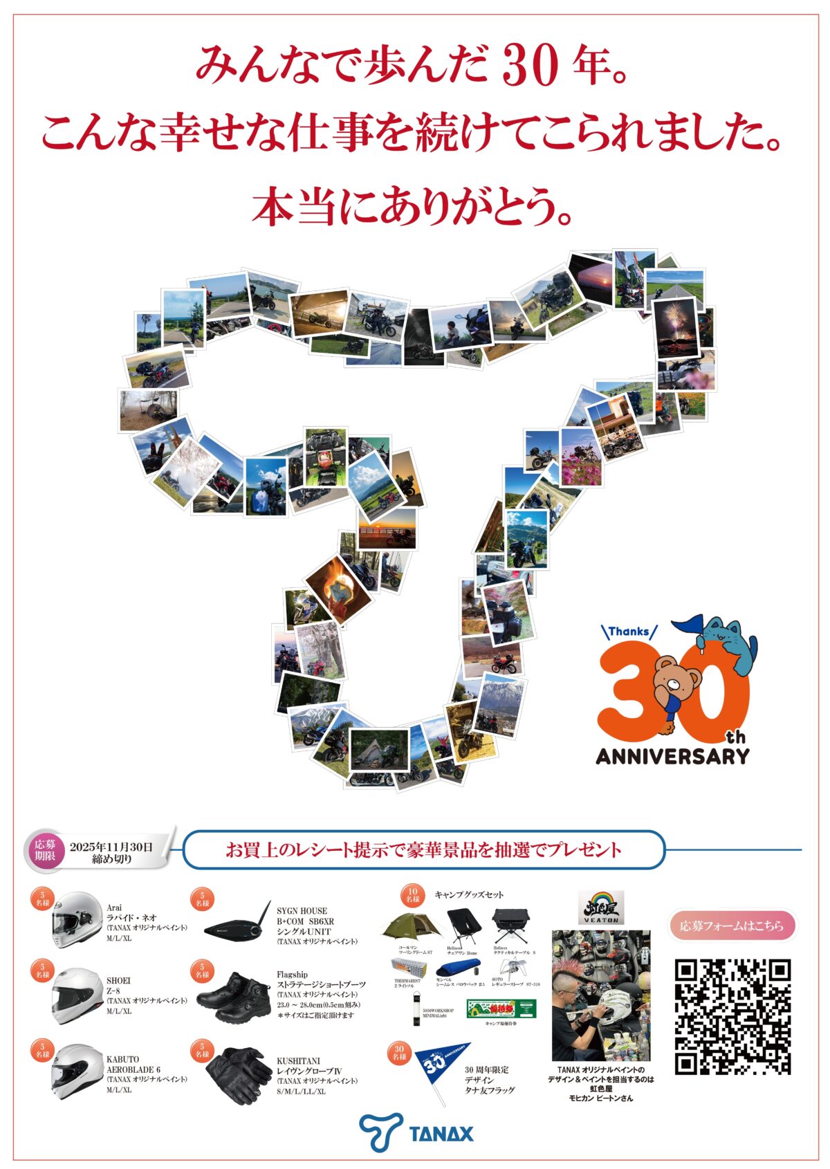 タナックス株式会社は、2025年7月1日に創立30周年を迎えるにあたり、ユーザー向けの記念キャンペーンを実施する。
