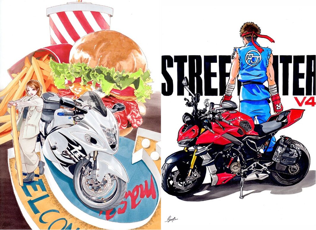 SNSで話題!RYUTA・Tのバイクイラスト展がユナイテッドカフェ宮ヶ瀬で開催