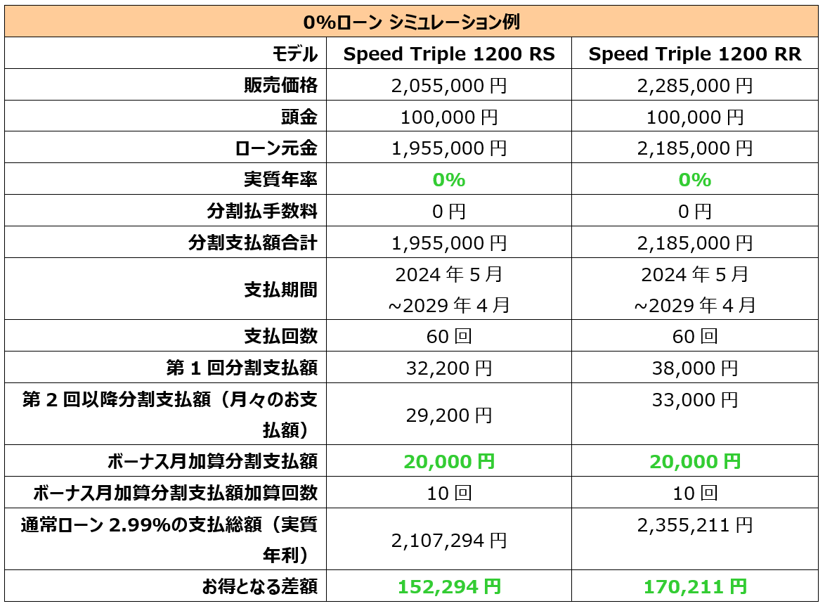 内容:キャンペーン期間中、全国のトライアンフ正規販売店にて対象車両をご成約、且つローン契約完了していただいたお客様に、「0% 特別金利ローン」をご提供します。