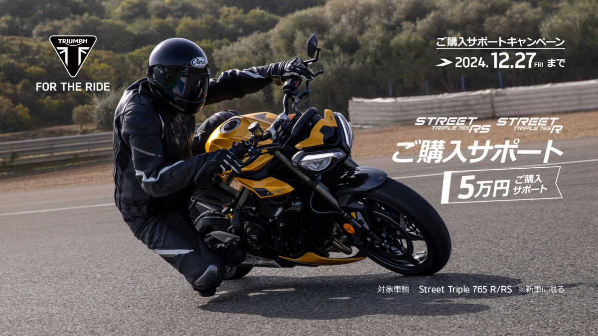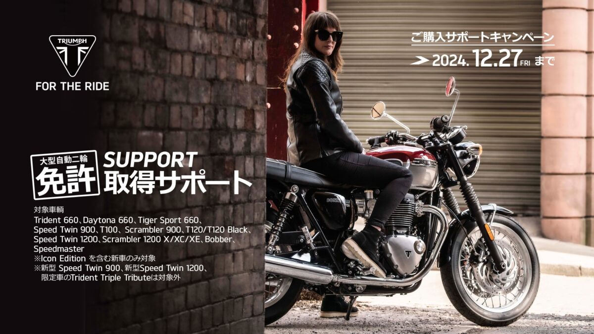 トライアンフモーターサイクルズジャパン株式会社は、2024年11月1日~12月27日までの期間中、全国のトライアンフ正規販売店にて冬の「ご購入サポートキャンペーン」を開催した。