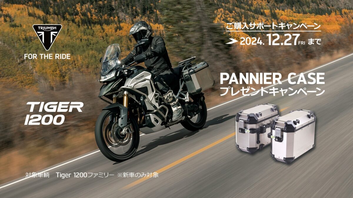 全国のトライアンフ正規販売店にてTIGER 1200ファミリーの新車をご成約いただいた方へ、サイドパニアケースをプレゼント!