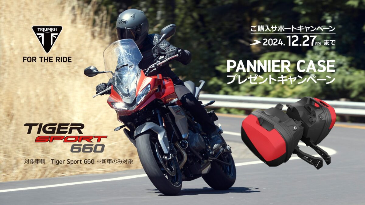 全国のトライアンフ正規販売店にてTIGER SPORT 660の新車をご成約いただいた方へ、サイドパニアケースをプレゼント!