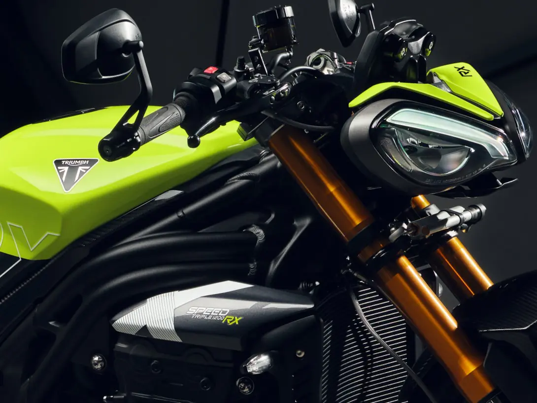 ・カーボンファイバー製ボディワーク、RX専用グラフィック、印象的なトライアンフパフォーマンスイエローのペイントスキームによりスポーティなスタイリングに。