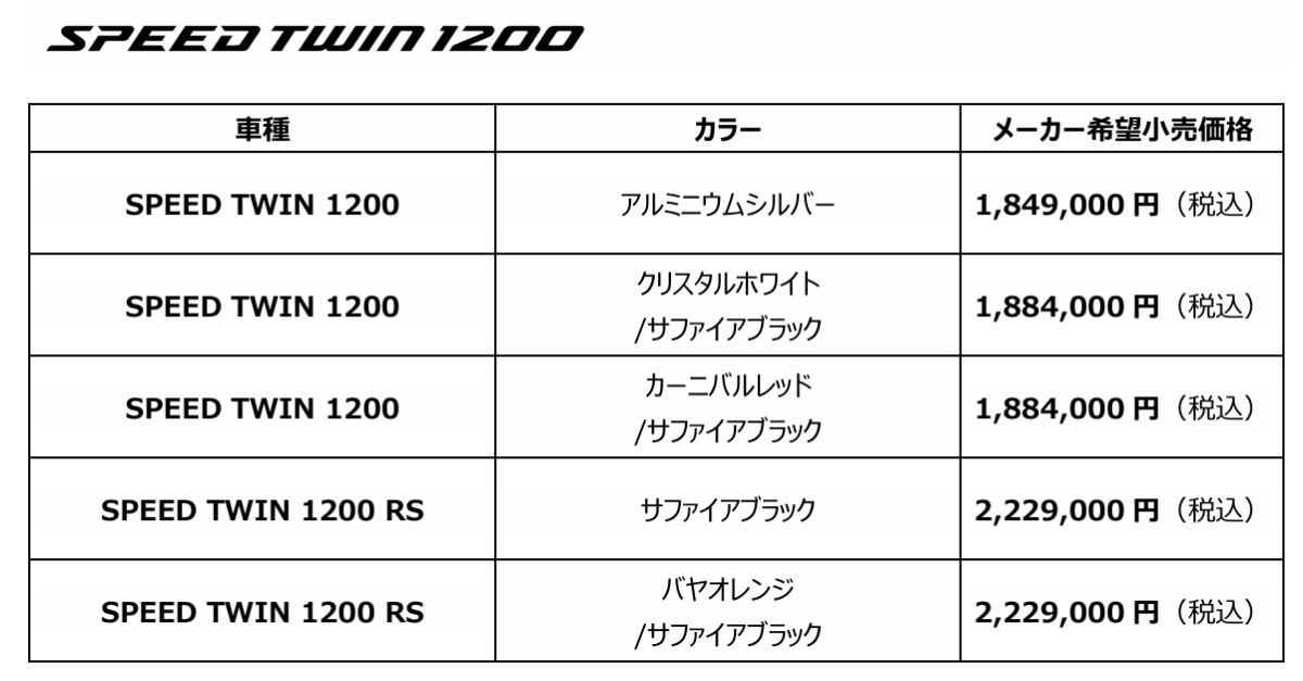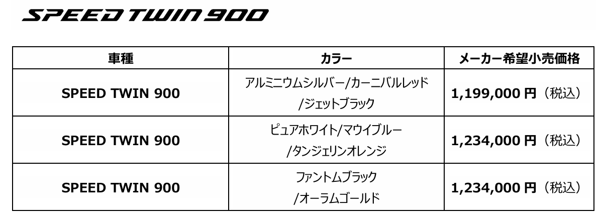 トライアンフモーターサイクルズジャパン株式会社(本社:東京都港区海岸 代表取締役社長:大貫陽介)は、2月15日(土)~3月30日(日)までの期間中、全国のトライアンフ正規販売店にて「SPEED TWIN 900/1200 FAIR」を開催する事をお伝えします。