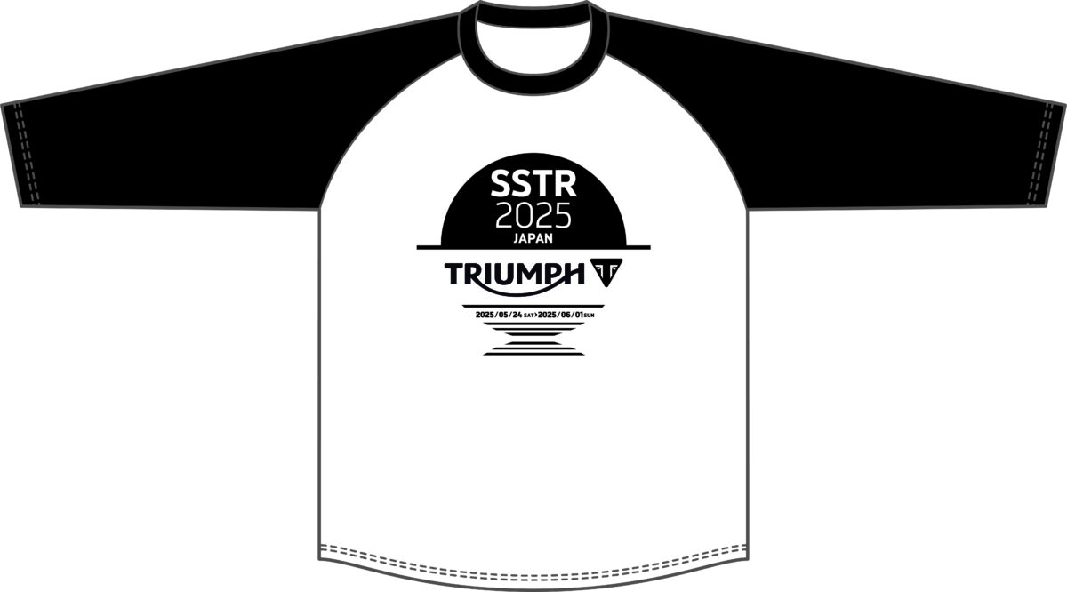 上記の①と②の両方のミッションをクリアされた方を対象として限定の「トライアンフオリジナル SSTR記念 ラグランロングスリーブTシャツ」をお渡しいたします。※無償提供、数やサイズに限りがございます。お電話での取り置き等にはご対応出来ませんので予めご了承ください。