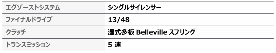 Exedy 製クラッチとBrembo製油圧システムを採用した5速ギアボックスにより、スムーズで正確な変速を実現し、クイックシフターはクラッチレスで2速から5速へのシフトアップを可能にします。