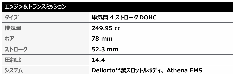 • ライダーが選択可能な強化されたトラクションコントロールとローンチコントロール設定、LEDエンジン速度インジケーターを備えたAthena製LC-GPAローンチコントロールモジュール