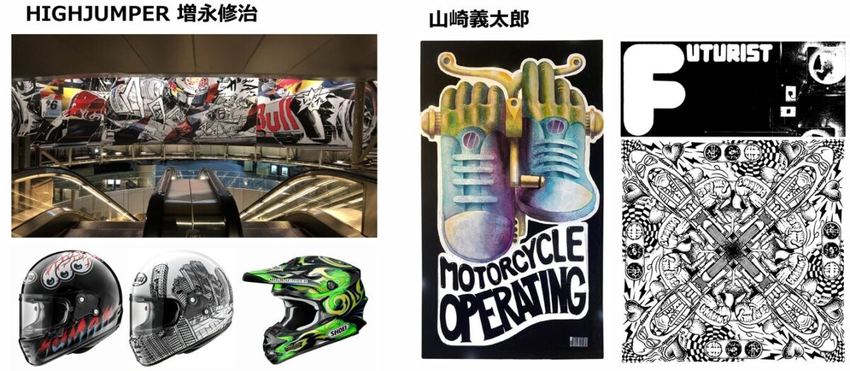 同展示会は、イラストレーターの加藤ノブキ氏、HIGHJUMPER 増永修治氏、山崎義太郎氏の3名による「ヘルメットをテーマにしたモーターサイクルアート展」となる。興味のある方は、新しいヘルメットアートの世界を体感してみてはいかがだろうか。