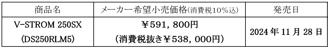 スズキ株式会社は、2024年11月28日に「V-STROM 250SX」のカラーリングを変更して発売する。