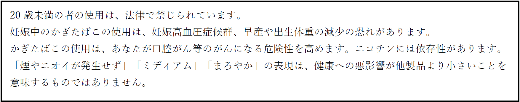 ※2 「ミディアム」の表現は、健康への悪影響が他製品より小さいことを意味するものではありません。