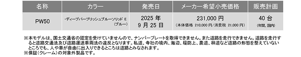 ヤマハ発動機販売株式会社は、キッズ向けファンバイク「PW50」の2026年モデルを2025年9月25日に発売する。