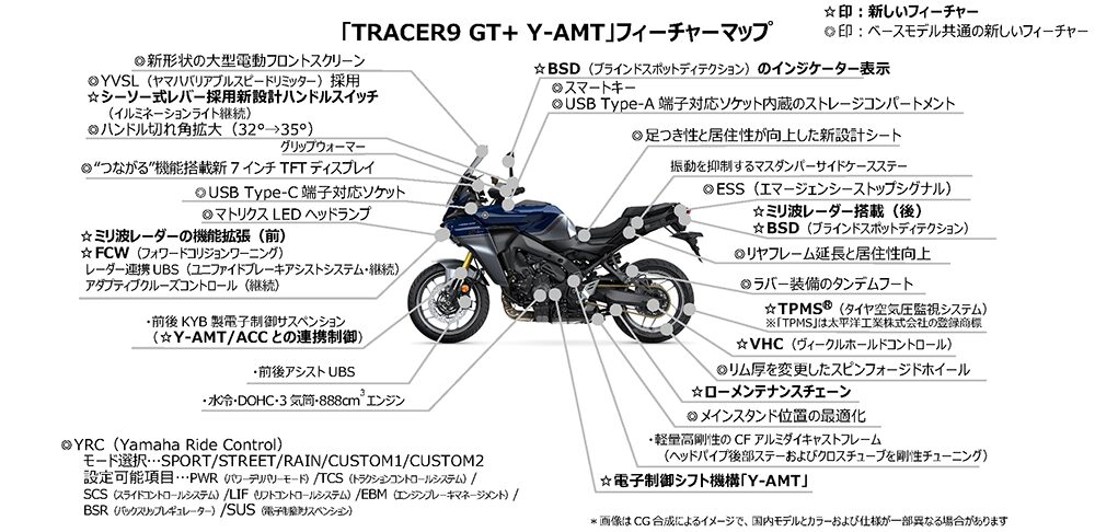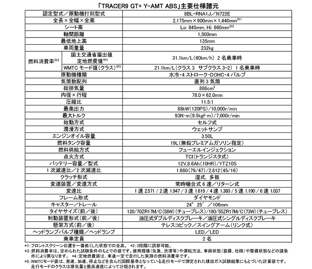 スポーツツアラー「TRACER9 GT+ Y-AMT ABS」発売~先行車に追従走行する機能「ACC」の進化やクラッチ操作不要の「Y-AMT」など先進機能搭載~