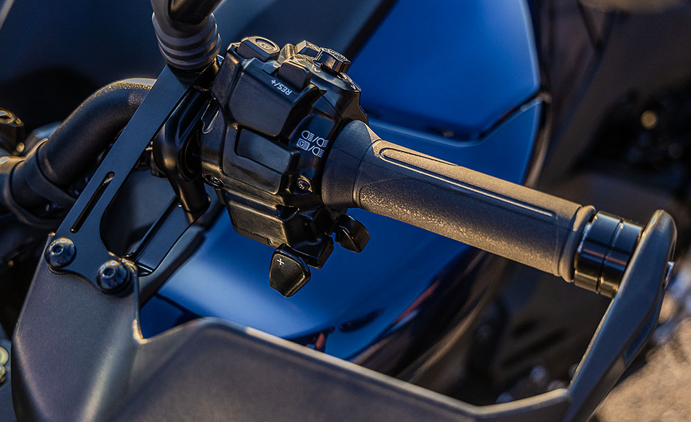 また「ATモード」で走行中に先行車に追従走行する機能「ACC(Adaptive Cruise Control:アダプティブクルーズコントロール)」を作動させている場合、定速走行中のギア選択の他、車速の増減によっても「Y-AMT」が自動的に変速します。一般的な四輪のオートマチック車と同様、追従走行中にシフトアップとダウン、もしくはその維持をシステムに託すことができる二輪車世界初*の制御です。