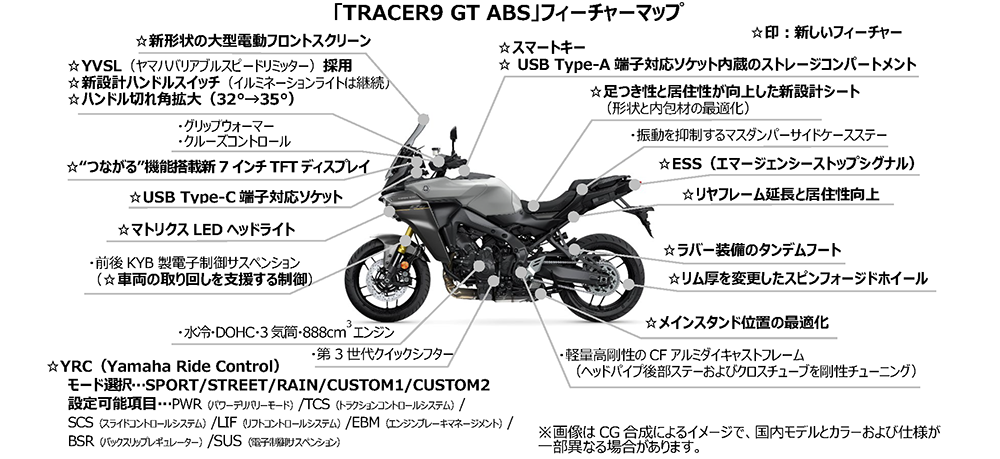【「TRACER9 GT」の新しい特徴】