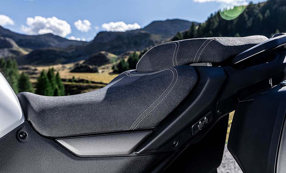 主な変更点は、1)先行車と対向車など周囲の状況にあわせて部分的に点灯・消灯・照射を自動制御する「マトリクスLEDヘッドランプ」やメインキーをONにした際、30秒間減衰力を低下させて車両の取り回しを支援する電子制御サスペンションなど、ライダーをサポートする新技術の搭載、2)フレームの最適化などによる良好な操縦性と安定性の実現、3)電動スクリーン採用をはじめ、居住性やウインドプロテクションの見直しによる快適性向上、4)スマートキー、USB Type-A端子対応ソケット内蔵のストレージコンパートメント、スマホと“つながる”機能*²を備えた7.0インチフルカラーTFTディスプレイなど機能・装備の充実です。