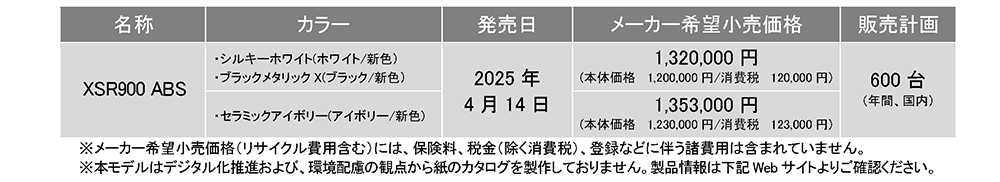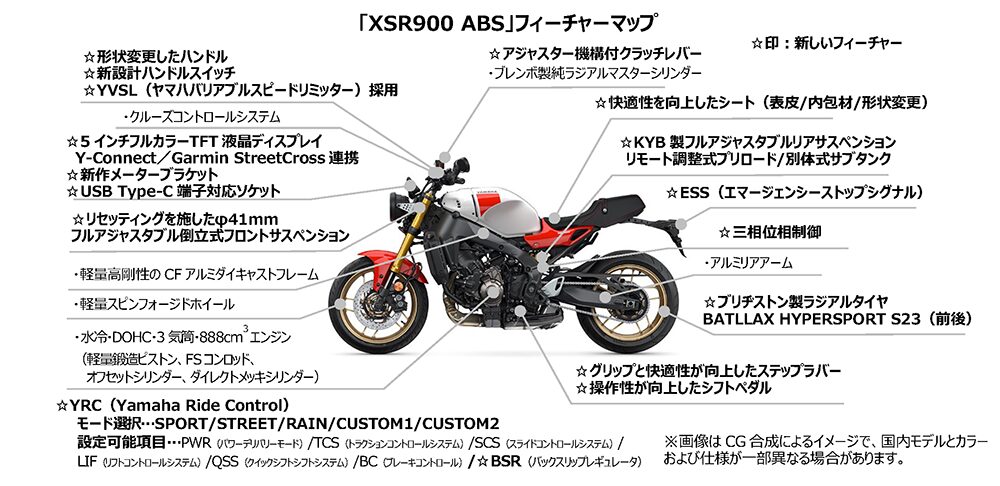 ヤマハ発動機販売株式会社は、スポーツヘリテージモデル「XSR900 ABS」の装備を充実し、2025年モデルとして2025年4月14日に発売する。