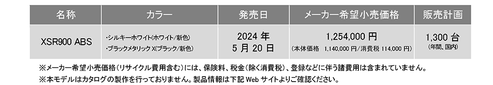 ヤマハ発動機販売株式会社は、“クロスプレーン・コンセプト*¹”に基づく水冷・4ストローク・DOHC・直列3気筒888cm³エンジンをCFアルミダイキャストフレームに搭載したスポーツヘリテージモデル「XSR900 ABS」のカラーリングを変更し、2024年5月20日に発売すると発表した。
