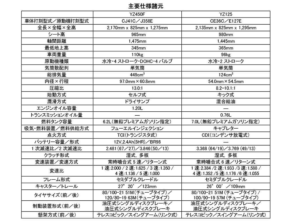 オフロード競技用モデル 製品サイト: https://www.yamaha-motor.co.jp/mc/lineup/#offroad-competition-lineup/
