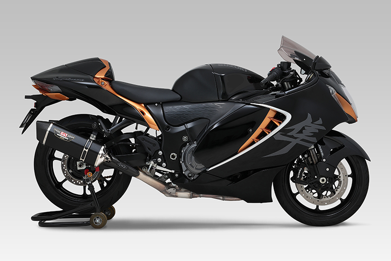 ヨシムラのアイコニックなR-11SqRサイレンサーにレース活動で培ったマフラー造りのノウハウを注入。チタンとカーボンファイバーの組み合わせにより、アグレッシブなスタイリングと軽量化を実現。すべてのディテールはHayabusaにふさわしい美しさと力強さを両立するために設計されています。