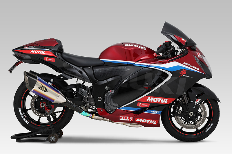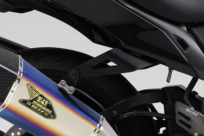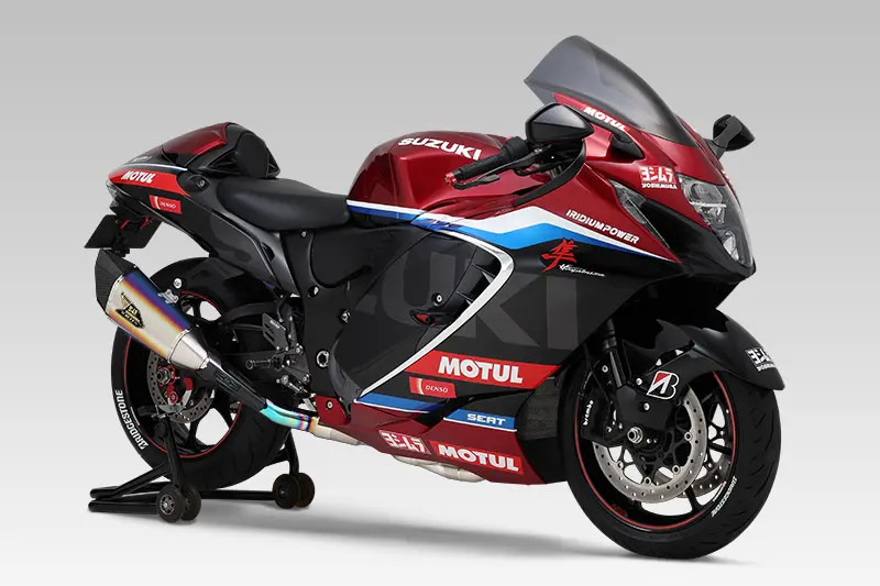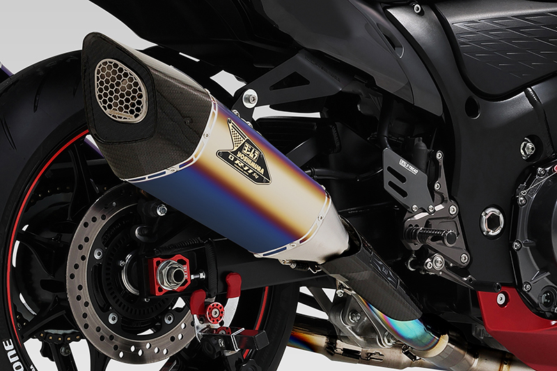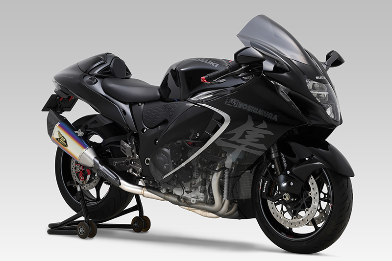 ヨシムラのアイコニックなR-11SqRサイレンサーにレース活動で培ったマフラー造りのノウハウを注入。チタンとカーボンファイバーの組み合わせにより、アグレッシブなスタイリングと軽量化を実現。すべてのディテールはHayabusaにふさわしい美しさと力強さを両立するために設計されています。