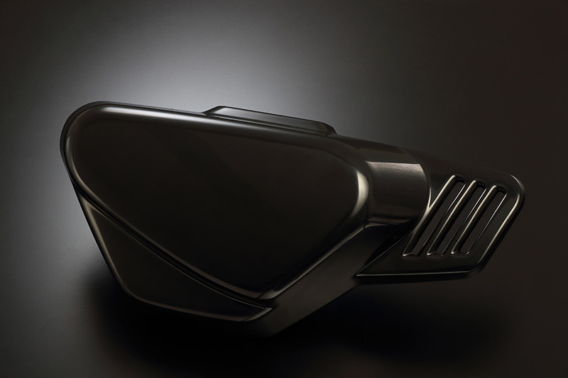 ノーマルのアップタイプマフラーから、ダウンタイプマフラーへ交換した際に装着可能となるサイドカバーです。