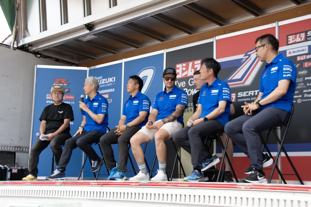 「YOSHIMURA SERT MOTULトークショー」では加藤チームディレクター、グレッグ・ブラック選手、ダン・リンフット選手、渥美 心選手が登壇。今シーズンのEWC戦について、ルマン戦やスパ戦の振り返りのほか、鈴鹿テストでのSUZUKI GSX-R1000Rのマシン状況報告と、本戦への抱負を語りました。