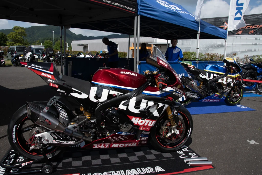 展示車両は、YOSHIMURA SERT MOTULおよびチームスズキCNチャレンジ のSUZUKI GSX-R1000R、ヨシムラパーツ装着デモマシンのほか、SUZUKI市販車も並びました。