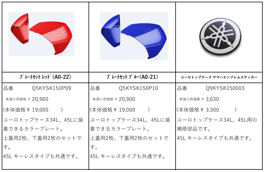 ユーロトップケース34L、45L、キーレス45L発売のご案内