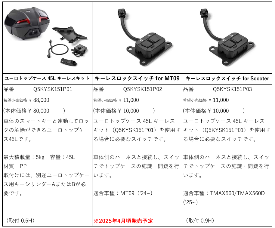 株式会社ワイズギアは、YAMAHA車両のデザインにマッチしたユーロトップケースシリーズに、デザインと操作性が向上した34Lと45Lを新たに追加して、2025年2月から順次発売すると発表した。