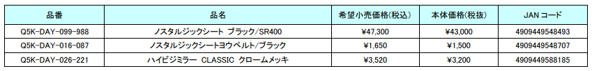 株式会社ワイズギアは、ヤマハSR400対応の新規発売アクセサリー「SR400復刻カラー外装セット」を発売すると発表した。