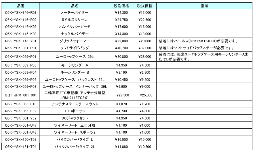 MT-07/MT-07 Y-AMT用 新アクセサリー及び、既存適合アクセサリーのご案内