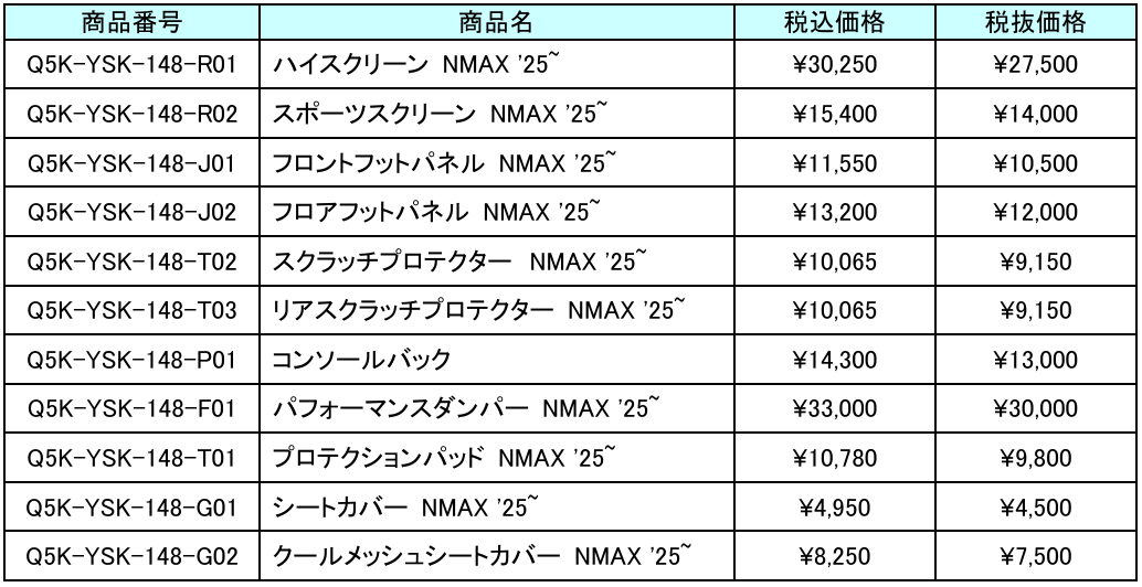 2025年2月より順次、販売が開始されるNMAX155対応の新規発売アクセサリー及び、適合する既存アクセサリーについてご案内申し上げます。