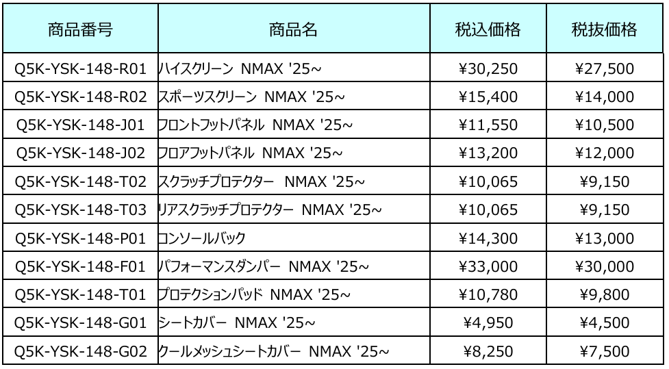 NMAX用 2025年モデル対応の新規発売アクセサリー及び、適合する既存アクセサリーについてご案内申し上げます。