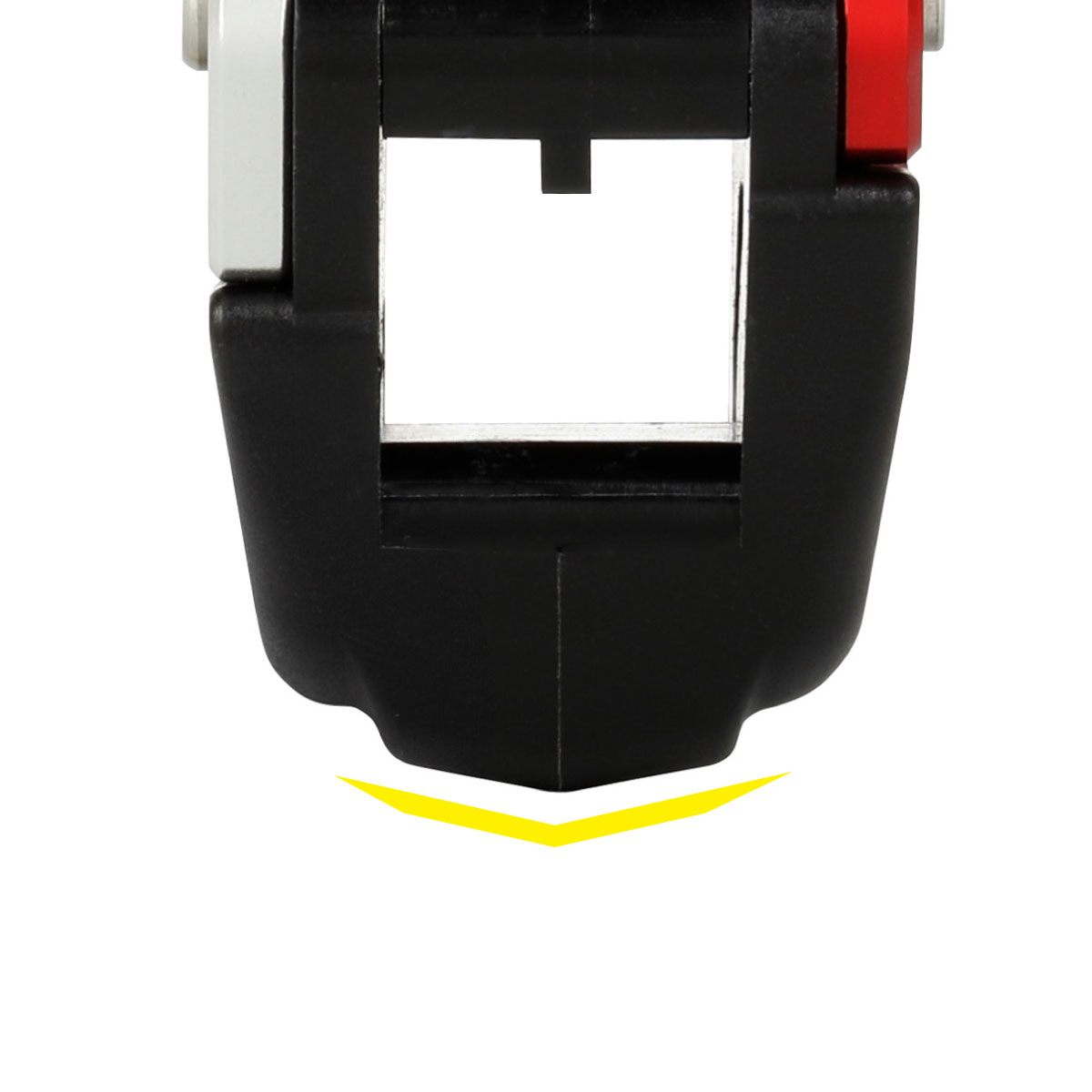 チェーンスライダー下側部分のV字形状は、ワダチなどを走行する際に路面との接触面積を低減させるデザイン。